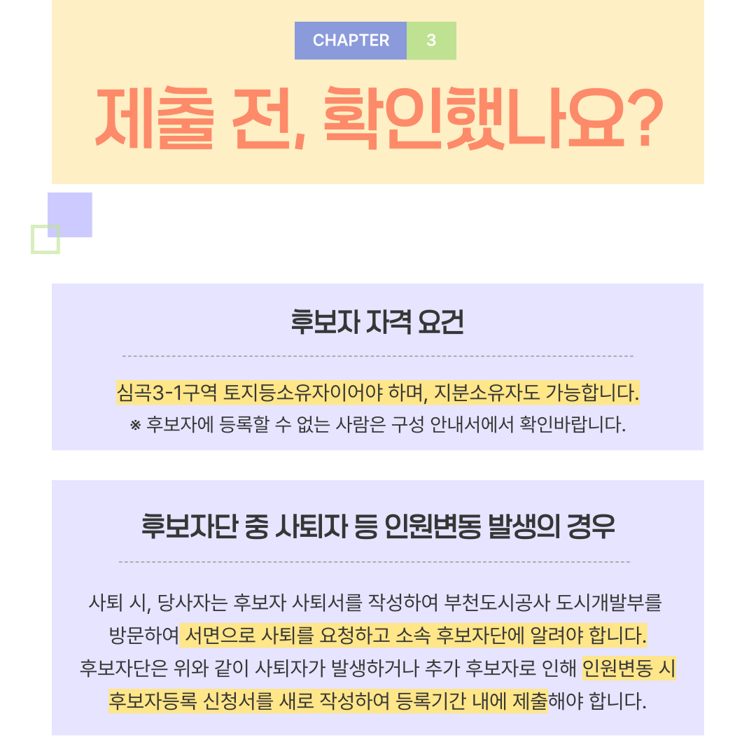 심곡3-1구역 공공재개발사업 「주민준비위원회의」 후보자단 등록 신청(입후보) 안내