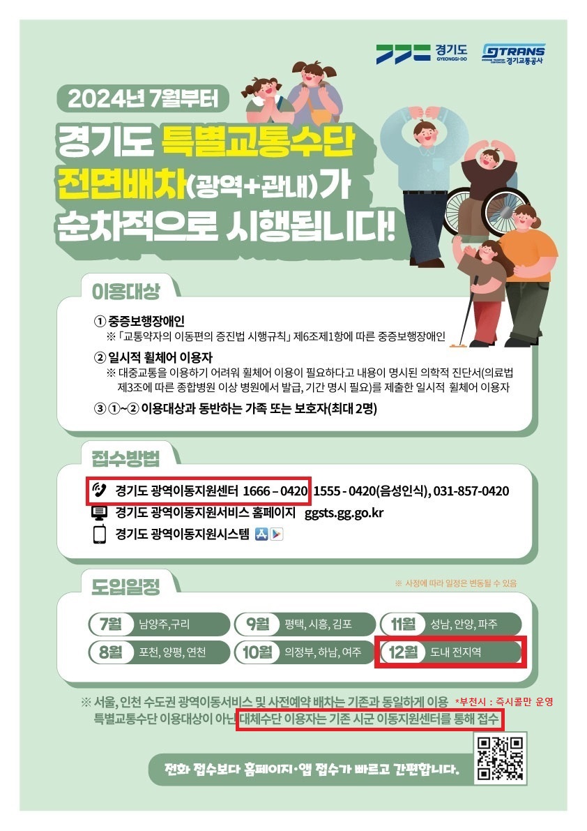2024년 12월 부천시 특별교통수단(복지택시) 경기도 광역콜센터(☎1666-0420) 전면배차 시행