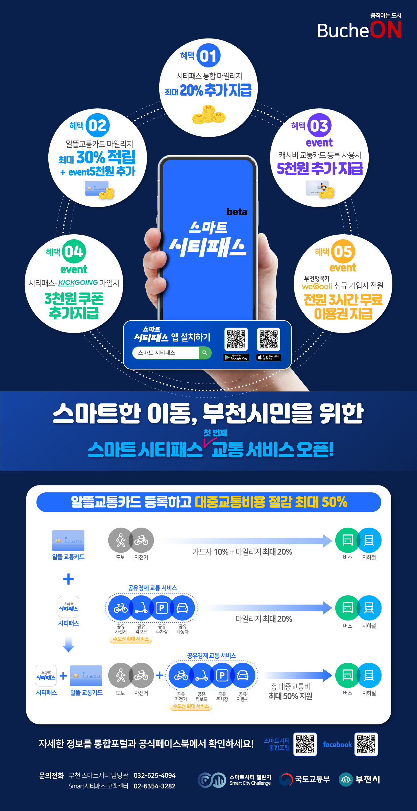 부천시민을 위한 smart시티패스 앱 오픈 안내 공지번호202179 작성자 관** 등록일자 2021년 7월 30일 10시 29분 58초 조회 1,322 스마트 시티패스 오픈포스터_1440x2800px(시청새소식).png [ Size : 598.57KB , Down : 1,540 ] 미리보기 다운로드 목록보기