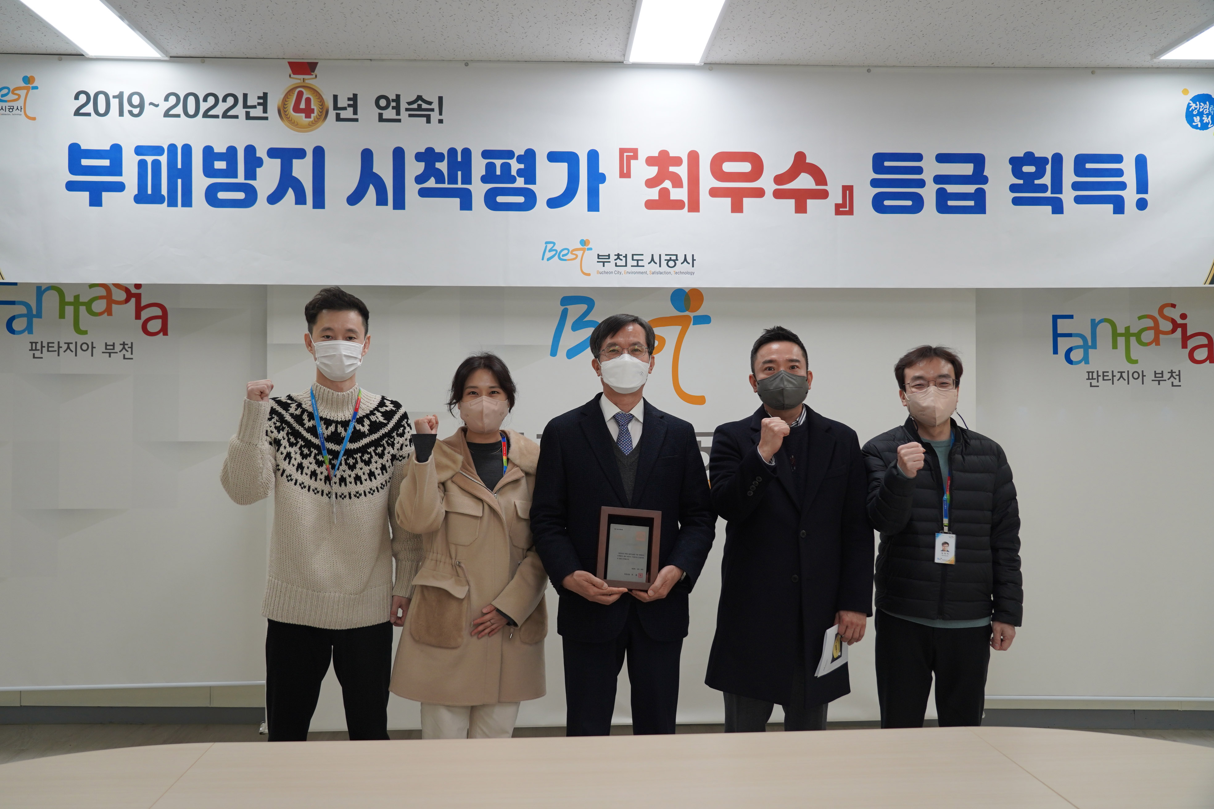 부천도시공사(사장 원명희)는 ‘2022년 부천시 출자 출연기관 부패방지 시책평가’에서 4년 연속 최우수 기관에 선정되었다고 2일 밝혔다.