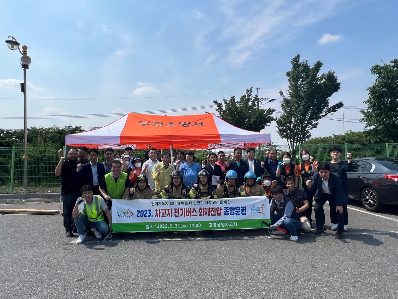 이날 훈련에는 5개 기관(원종119안전센터, 부천시 대중교통과, 차고지 3개 운수회사, 삼천리ENG, 부천도시공사)이 참여하였으며, 전기버스