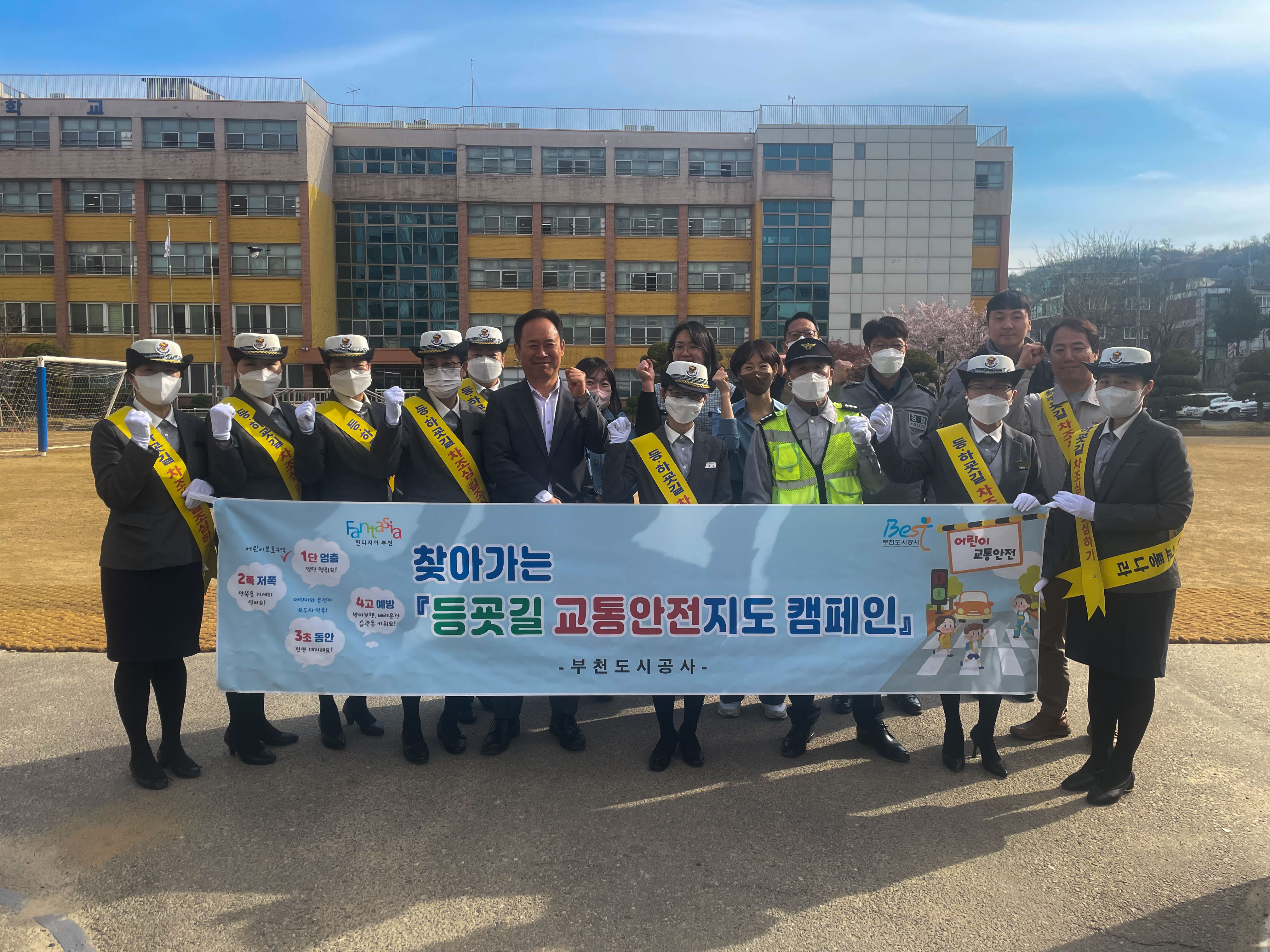 부천도시공사(사장 원명희)는 어린이의 안전한 등굣길을 위해 지난 4일 부천시어린이교통나라 자원봉사자 및 공사 관계자가 함께 원미초등학교 앞에서 찾아가는 등굣길 교통안전지도 캠페인을 진행했다고 밝혔다.