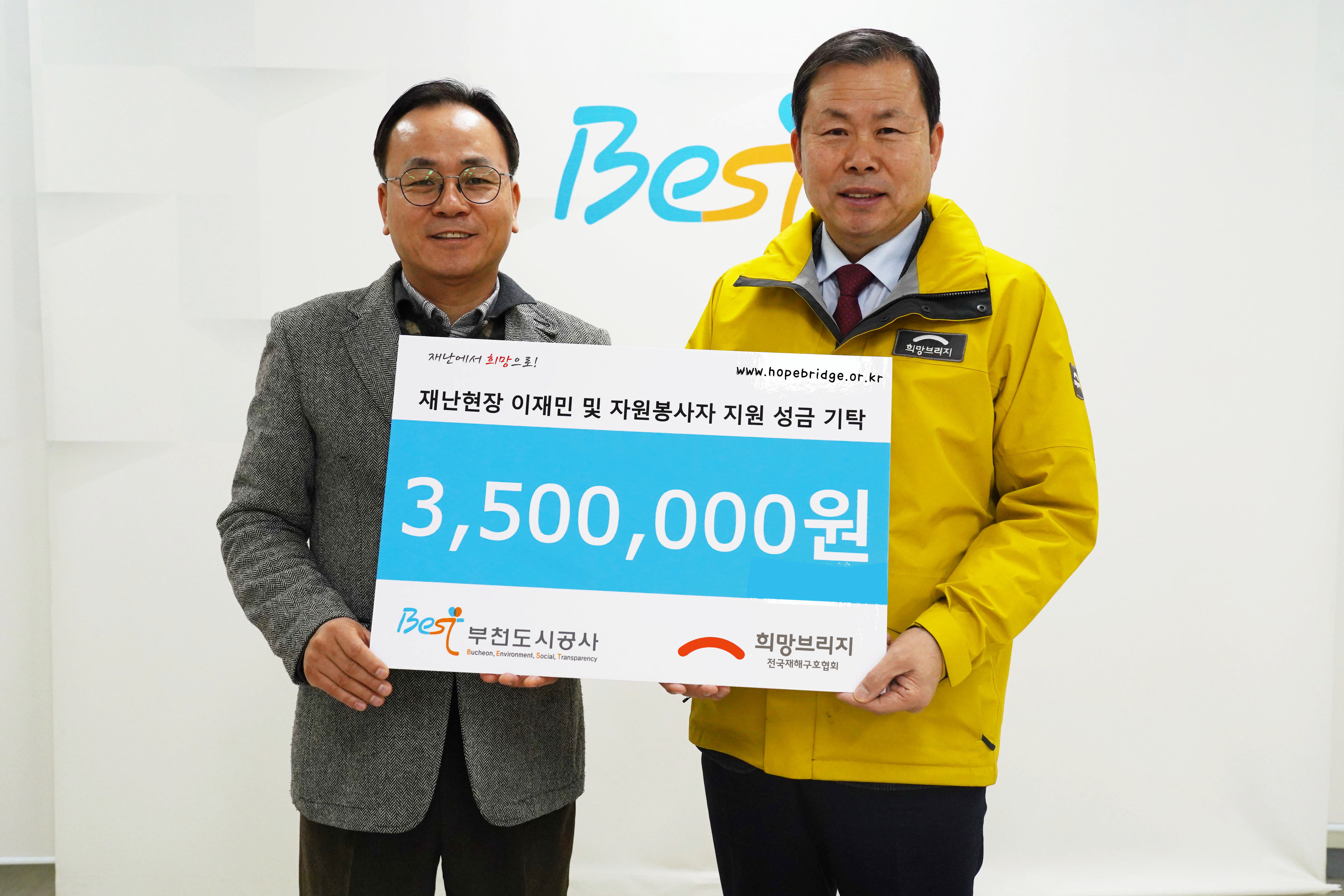부천도시공사, 임직원 온정 모아 재난구호금 전달