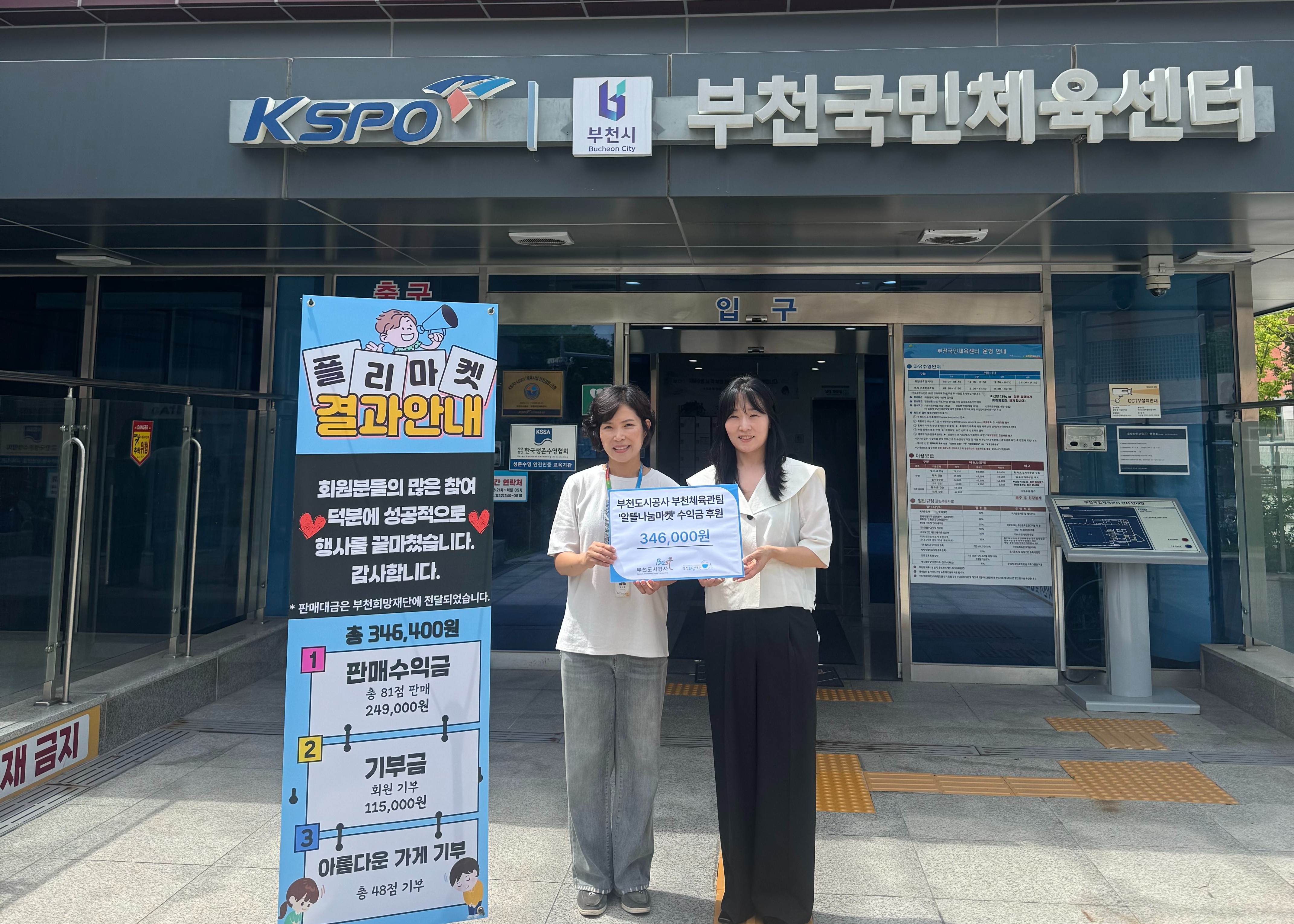 행사에는 체육관 이용 고객들이 자발적으로 참여해 의류, 학용품, 생필품 등 다양한 물품을 기증하고, 필요한 물품은 중고 제품으로 구매함으로써 자원 순환과 나눔의 가치를 함께 실천하는 의미 있는 시간이 되었다. 또한 행사 종료 후 판매되지 않은 남은 물품은 아름다운가게에 기증해 지역사회와의 연대를 이어갔다.