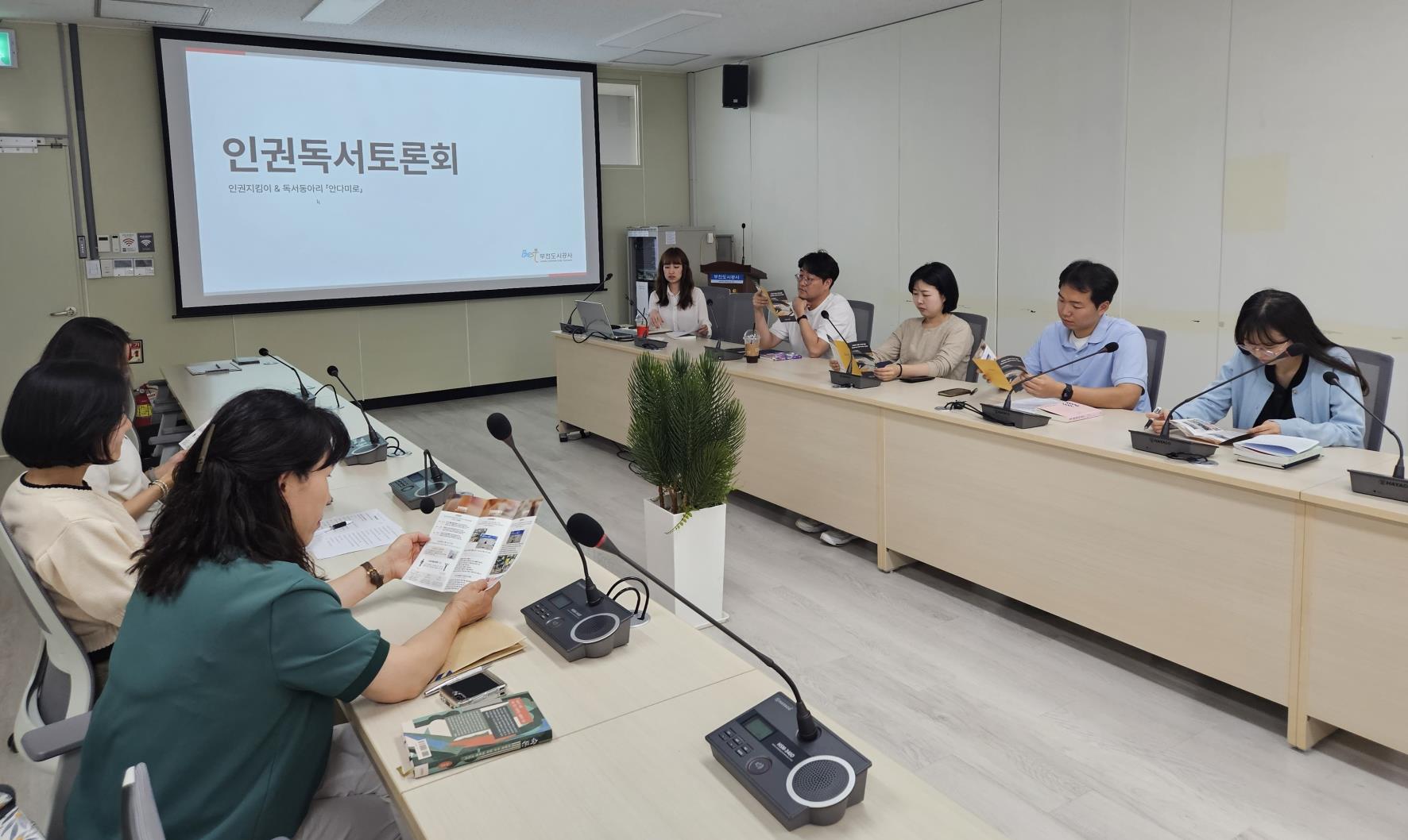 부천도시공사(사장 원명희)는 지식나눔문화 확산을 도모하고자 사내 독서동아리 안다미로」  및 인권지킴이 회원 15명을 대상으로 합동 인권 독서토론회를 개최했다고 9일 밝혔다.
