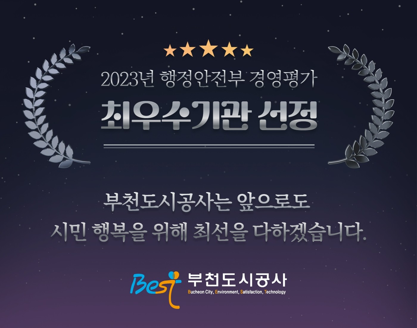 부천도시공사, 행정안전부 경영평가 최우수기관 선정