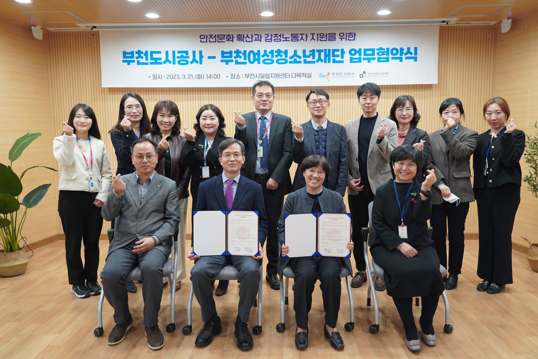 원명희 공사 사장은“고객 응대 업무에 따른 감정노동 문제가 나날이 심화되고 있는 만큼 감정노동자 권익 보호를 위해 노력하고, 건강증진 프로그램 참여를 통해 종사자 건강증진에 힘쓰겠다”라고 말하며 “여성청소년재단과 사회공헌 공동 추진 등 부천시 발전을 위한 활동들을 함께 해나가겠다”라고 전했다.