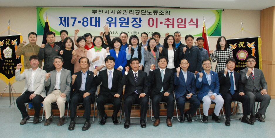 5월 7일 오후 4시 부천종합운동장 대회의실에서 경기도의회 류재구 도의원을 비롯하여 부천시의회 서헌성 재정문화위원장, 한선재 시의원, 한국노총 부천지부 황완성 의장, 공단 임‧직원들이 참석한 가운데 제7‧8대 노동조합위원장 이‧취임식이 열렸다.