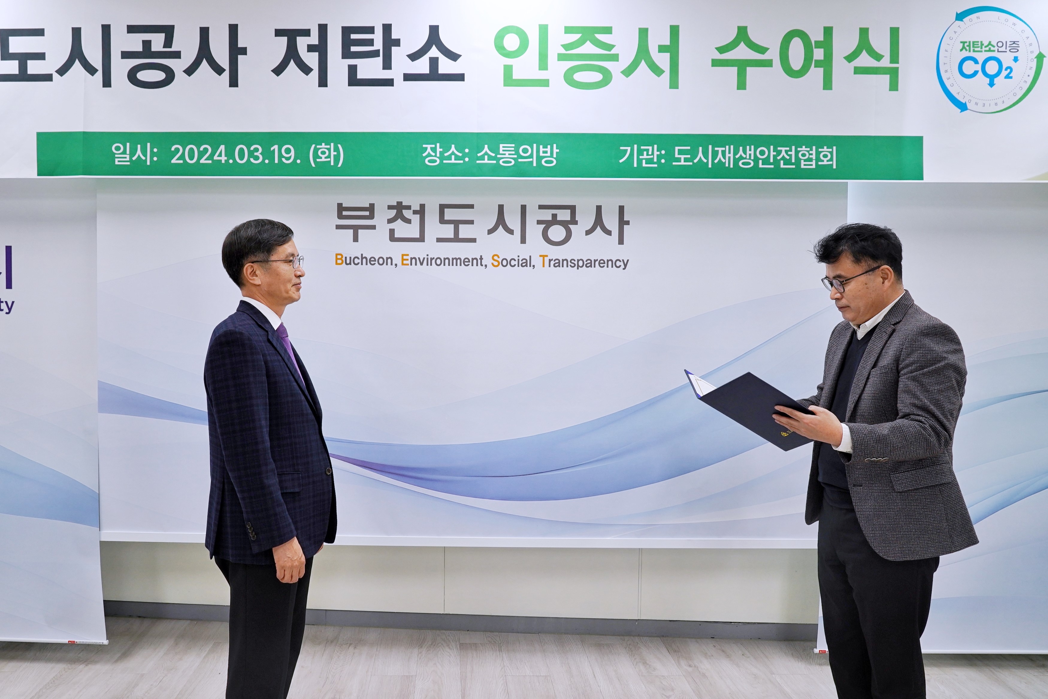 저탄소 인증서 수여식 작성자 최** 등록일자 2024년 3월 19일 14시 40분 6초 조회 421 저탄소 인증 단체사진(중앙).jpg [ Size : 1.23MB , Down : 243 ] 미리보기 다운로드 저탄소 인증서 수여.jpg [ Size : 1.06MB , Down : 222 ] 미리보기 다운로드 저탄소 인증 단체장.jpg [ Size : 2.37MB , Down : 224 ] 미리보기 다운로드 저탄소 간담회2.JPG [ Size : 5.06MB , Down : 290 ] 미리보기 다운로드 저탄소 간담회1.JPG [ Size : 4.78MB , Down : 287 ] 미리보기 다운로드 목록보기