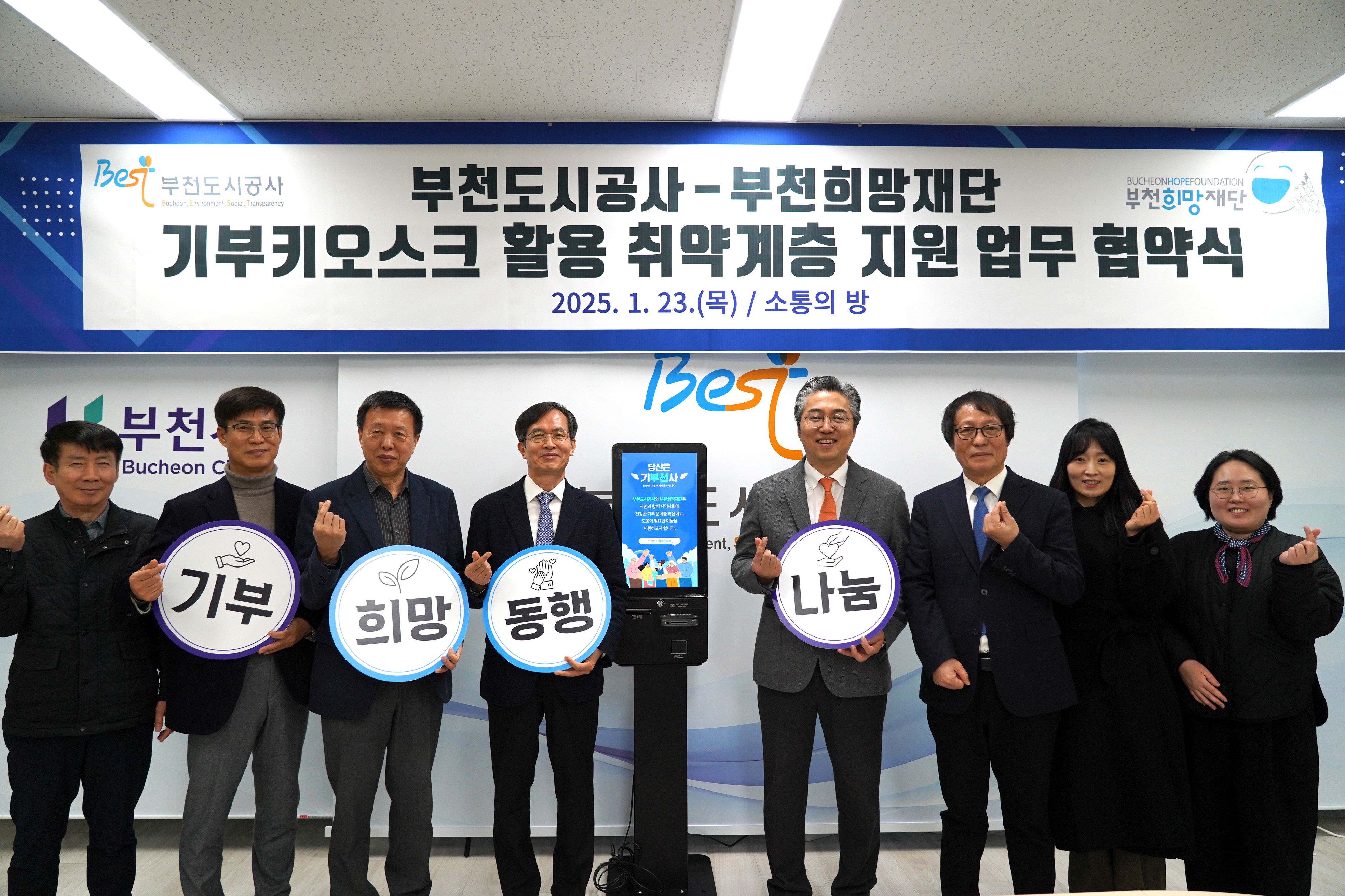 부천도시공사-부천희망재단 기부키오스크 MOU체결 작성자 최** 등록일자 2025년 1월 23일 11시 38분 12초 조회 268 단체사진.jpg [ Size : 2.1MB , Down : 151 ] 미리보기 다운로드 단체장 사진_상반신.jpg [ Size : 1.63MB , Down : 150 ] 미리보기 다운로드 협약서 서명 모습.jpg [ Size : 1.74MB , Down : 166 ] 미리보기 다운로드 기부 키오스크 참여 모습.jpg [ Size : 1.72MB , Down : 149 ] 미리보기 다운로드 기부 키오스크 참여 모습2.jpg [ Size : 1.7MB , Down : 145 ] 미리보기 다운로드 목록보기