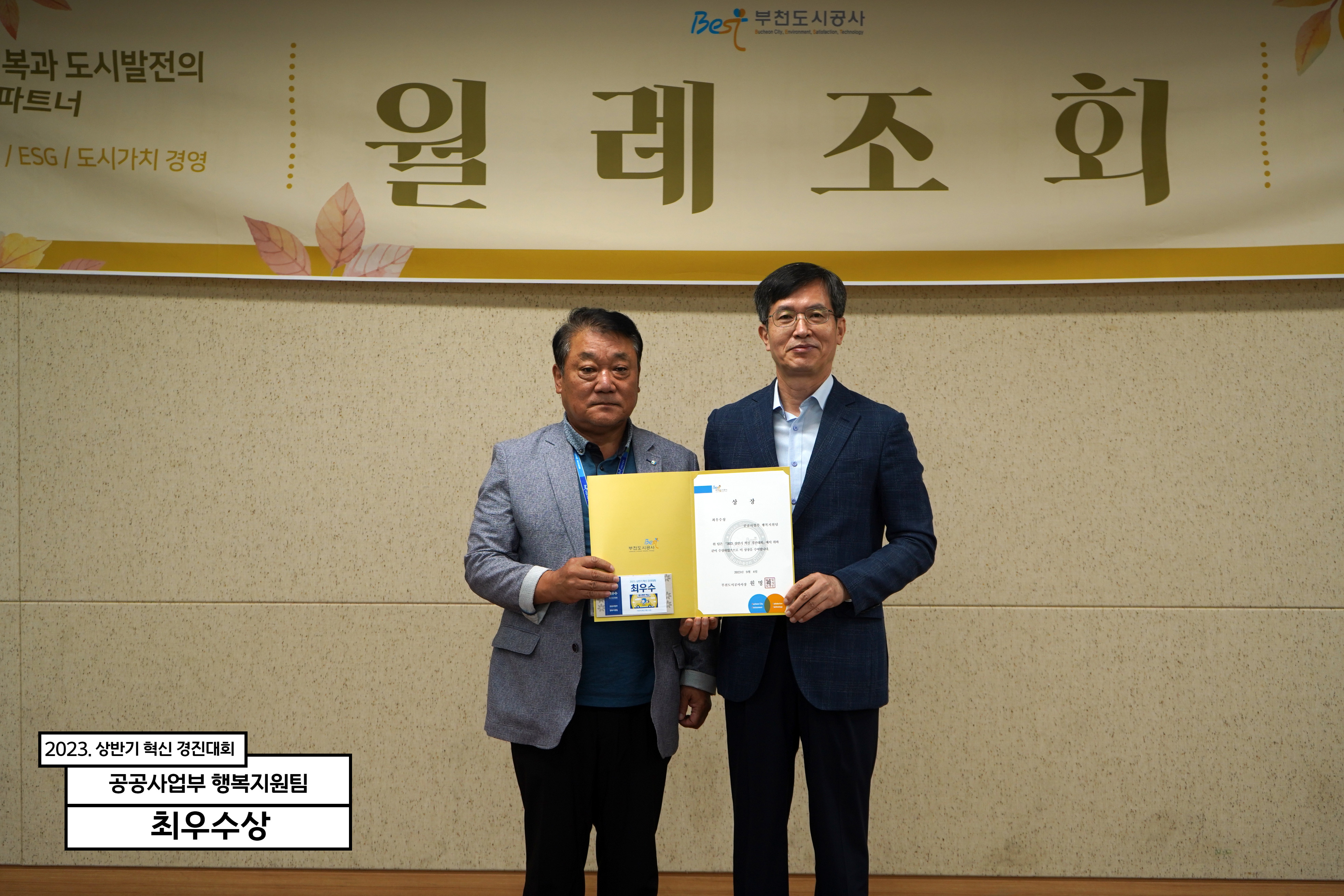 9월 월례조회(상반기 혁신경진대회 포상, 업무성과보고,사장·도시개발본부장 말씀)