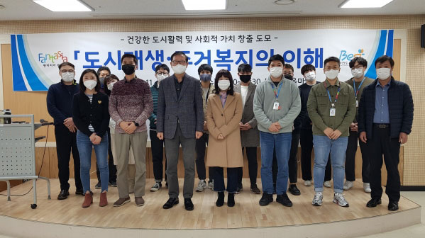부천도시공사, 도시재생·주거복지 분야 임직원 역량강화 작성자 구** 등록일자 2021년 5월 13일 8시 30분 6초 조회 517 건강한 도시활력 및 사회적 가치 창출을 위해 도시재생·주거복지 분야의 임직원 역량 강화 교육 ○ 일시 : 2020.11.9. ~ 11.11.(3일간) ○ 과정 : 주거복지개론, 주거복지서비스개론○ 강사 : (사)한국사회주택협회, 한국주거복지연구원 등 해당분야 실무 전문가 도시재생주거복지교육.jpg [ Size : 59.78KB , Down : 342 ] 미리보기 다운로드 목록보기