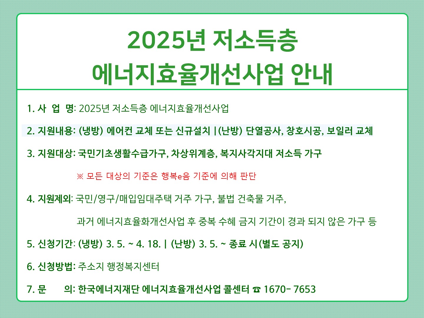 2025년 저소득층 에너지효율개선사업 안내
